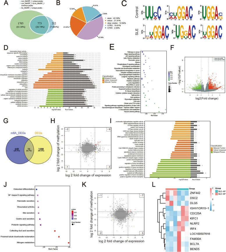 Background: Systemic lupus erythematosus (SLE) is an autoimmune disease of unknown cause. N6-methyladenosine (m6A) is the most common mRNA modification and participates in various immune processes such as interferon production and immune cell regulation. However, the role of m6A in dysregulated immune response of SLE remains unknown.