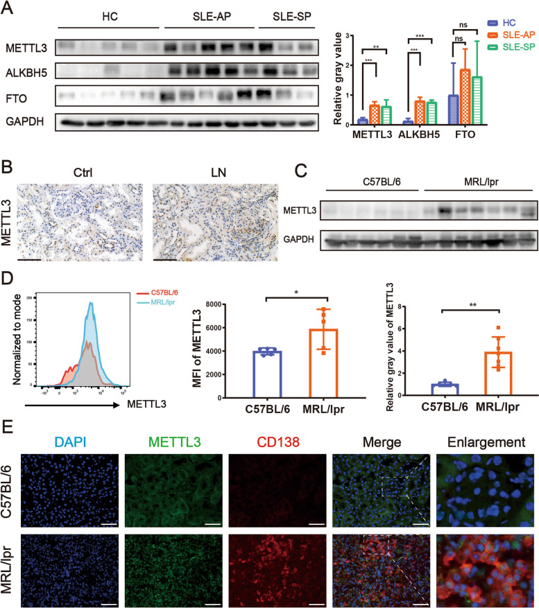 Conclusions: Our study confirmed that upregulated METTL3 promoting IRF4 expression in an m6A-dependent manner, thus causing plasma cell infiltration-mediated kidney damage of SLE. This provides new evidence for the role of m6A in SLE kidney injury.