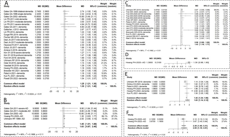 Results: In the UKB cohort study, compared to participants with normal hearing, those in the mild and severe hearing impairment groups had progressively and significantly higher risk of all-cause dementia (mild: HR1.52, 95%CI 1.31-1.77; severe: HR1.80, 95%CI 1.36-2.38), AD (mild: HR1.63, 95%CI 1.30-2.04; severe: HR2.18, 95%CI 1.45-3.27), VD (mild: HR1.68, 95%CI 1.19-2.37; severe: HR1.47, 95%CI 1.22-1.78), and NAVD (mild: HR1.47, 95%CI 1.22-1.78; severe: HR1.98, 95%CI 1.43-2.75). Besides, vision impairment was associated with an increased risk of all-cause dementia (HR1.55, 95%CI 1.18-2.04) and NAVD (HR1.51, 95%CI 1.07-2.13). Furthermore, dual sensory impairment was associated with stepwise increased risks of all-cause and cause-specific dementia than single hearing or vision impairment. In the meta-analysis of 31 prospective cohort studies, risks of all-cause dementia and AD were elevated in participants with single hearing impairment (all-cause dementia: HR1.30, 95%CI 1.21-1.40; AD: HR1.30, 95%CI 1.21-1.40) and dual sensory impairment (all-cause dementia: HR1.63, 95%CI1.14-2.12; AD: HR 2.55, 95%CI 1.19-3.91), while single vision impairment only associated with higher risk of all-cause dementia (HR1.43, 95%CI 1.16-1.71) but not AD. Finally, the MR analysis revealed a significant association between hearing impairment and all-cause dementia (OR1.74, 95%CI 1.01-2.99), AD (OR1.56, 95%CI 1.09-2.23), and NAVD (OR1.14, 1.02-1.26), as well as vision impairment and NAVD (OR1.62, 95%CI 1.13-2.33).
