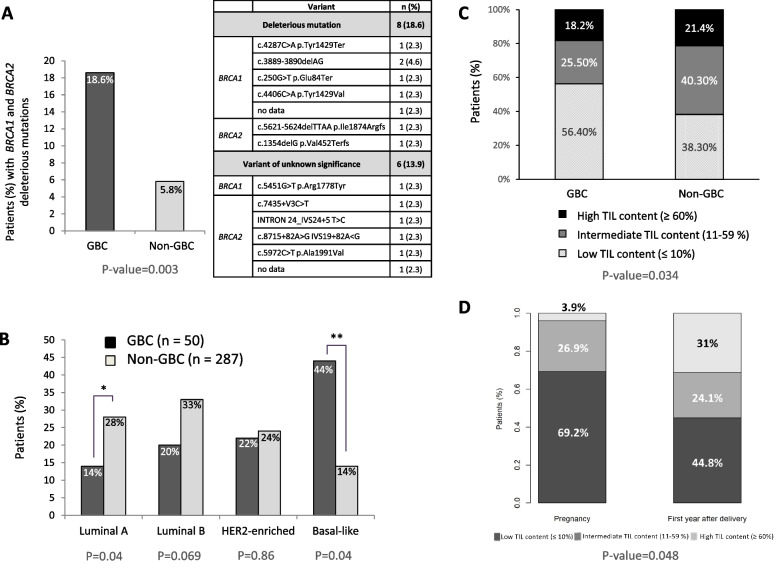 Keywords: Breast cancer; Gene expression; Gestation; Gestational breast cancer; PAM50 intrinsic subtypes; Tumor infiltrating lymphocytes (TILs).