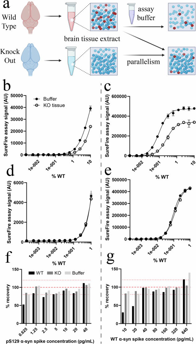 Assays for quantifying aggregated and phosphorylated (S129) human α-synuclein protein are widely used to evaluate pathological burden in patients suffering from synucleinopathy disorders. Many of these assays, however, do not cross-react with mouse α-synuclein or exhibit poor sensitivity for this target, which is problematic considering the preponderance of mouse models at the forefront of pre-clinical α-synuclein research. In this project, we addressed this unmet need by reformulating two existing AlphaLISA® SureFire® Ultra™ total and pS129 α-synuclein assay kits to yield robust and ultrasensitive (LLoQ ≤ 0.5 pg/mL) quantification of mouse and human wild-type and pS129 α-synuclein protein. We then employed these assays, together with the BioLegend α-synuclein aggregate ELISA, to assess α-synuclein S129 phosphorylation and aggregation in different mouse brain tissue preparations. Overall, we highlight the compatibility of these new immunoassays with rodent models and demonstrate their potential to advance knowledge surrounding α-synuclein phosphorylation and aggregation in synucleinopathies.