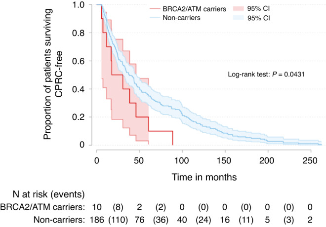 Results: These interim results (N = 220) demonstrate a similar frequency of germline DRG variants in mCRPC patients compared with previously published data (15% detection rate). No significant clinical differences were identified between all carriers and non-carriers, though BRCA2/ATM carriers were found to have a shorter time to mCRPC diagnosis.