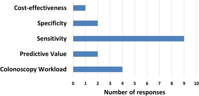 Results: In-use quantitative FIT were provided by four main manufacturers; Minaris Medical (2 countries), Eiken Chemical Company/Polymedco (21), Alfresa Pharma (2) and Sentinel Diagnostics (4). Of the 38 screening sites, 15 used the threshold of 20 µg hemoglobin/g feces, while thresholds ranged between 8.5 and 120 ug/g in the remainder. Seven explanations were given for adopted FIT thresholds; maximizing the sensitivity for colorectal neoplasia (n = 23) was the most common followed by the availability of colonoscopy resources (n = 18). Predictive value, specificity, and cost effectiveness were less frequently reported as the rationale. Nine sites found it necessary to change the threshold that they had initially selected.