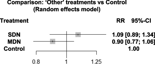Results: Safety data was collected for a total of 587 patients (193 exposed to SDN products, 114 exposed to MDN products and 280 exposed to control treatment). The 12 studies showed similar overall safety event counts for MDN and SDN versus placebo (RRs: 0.90 and 1.09, respectively [P = 0.206 and P = 0.420, respectively]). Results indicated similar risk of safety events for MDN compared to SDN (RR: 0.83, P = 0.159). Positive benefit-risk ratios were demonstrated for MDN and SDN versus placebo (RRs: 1.70 and 1.16, respectively [P = 0.003 and P = 0.173, respectively]). MDN had a greater benefit-risk ratio compared to SDN (RR: 1.46, P = 0.072).