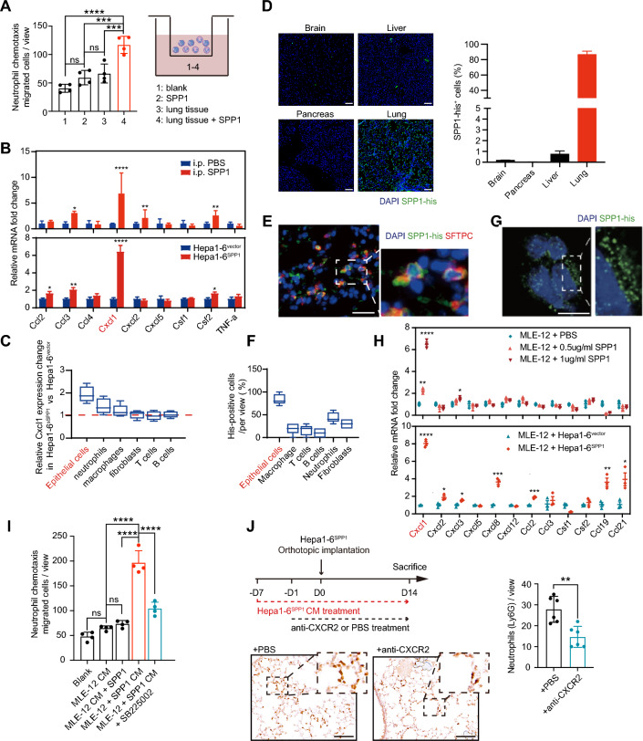Methods: Orthotopic metastasis models, experimental metastasis models, CyTOF and flow cytometry were conducted to explore the function of SPP1 in shaping neutrophil-dominant PMN and promoting HCC lung metastasis. The main source of CXCL1 in lung tissues was investigated via fluorescence activated cell sorting and immunofluorescence staining. The expression of neutrophils and neutrophil extracellular traps (NETs) markers was detected in the lung metastatic lesions of HCC patients and mouse lung specimens. The therapeutic significance was explored via in vivo DNase I and CXCR2 inhibitor assays.