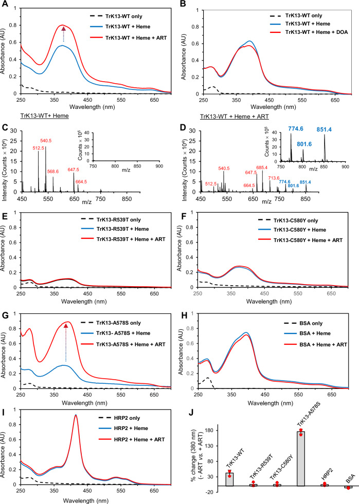 Artemisinin-resistant Plasmodium falciparum Kelch13 mutant proteins display reduced heme-binding affinity and decreased artemisinin activation