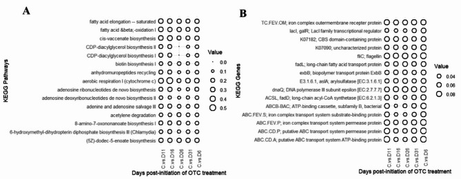 Trachinotus blochii is a high-value tropical mariculture species. The present study evaluated the gut microbial impact of therapeutic exposure (80 mg/day/kg biomass for 10 days) to oxytetracycline, the most common aquaculture antibiotic in T. blochii. The cultivable counts, α-diversity measures of taxonomic and functional metagenomics, microbial dysbiosis (MD) index, and microbial taxon abundances showed the resilience of gut microbiota at 16-26 days of treatment. A significant reduction in bacterial abundance, diversity measures, Firmicutes and Actinobacteria and an increase in γ-Proteobacteria was recorded on the 6th and 11th day of treatment. The increased metagenomic stress signatures, decreased beneficial bacterial abundances, decreased abundance of microbial pathways on energy metabolism, and MD index indicated short-term transient stress during the initial days of therapeutic withdrawal, warranting health management measures. Therapeutic exposure reduced the abundance of fish pathogens, including Vibrio spp., kanamycin and ampicillin-resistant bacteria. Strikingly, oxytetracycline treatment did not increase tetracycline-resistant bacterial counts and the predicted abundance of tetracycline resistance encoding genes in the gut, illustrating that therapeutic application would not pose a risk in the context of antimicrobial resistance in short term. Altogether, the present study provides a foundation for oxytetracycline treatment to develop suitable risk minimization tactics in sustainable aquaculture.