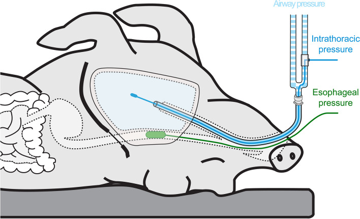 Methods: In a swine model with a preserved esophagus and a single homogenous, easily measurable intrathoracic pressure, we evaluated esophageal pressure's agreement with intrathoracic pressure at different positive end-expiratory pressure (PEEP) levels (0, 5, 10, 15 cmH2O). We assessed the improvement of measurement accuracy by correcting absolute esophageal values using a previously described technique, that accounts for the pressure generated by the esophageal wall in response to esophageal balloon inflation. The study involved five swine, wherein two different esophageal catheters were used alongside the four distinct PEEP levels. Swings, uncorrected and corrected absolute esophageal pressures (end-inspiratory, end-expiratory) were compared with their respective intrathoracic pressures. The effect of correction technique was assessed with manual incremental step inflation procedure.
