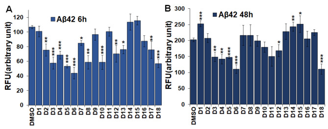 Conclusion: A higher polypharmacy incidence was observed in an elderly population of 228 ND, 114 MCI, and 124 AD patients. We found that several highly recommended drug components, including vitamin D3, Levothyroxine, Prilosec, Flomax, and Norvasc, efficiently reduce the amount of fibrils formed by monomeric Aβ42 and existing preformed Aβ fibrils in vitro. However, only Levothyroxine was able to prevent Aβ-mediated toxicity to SH-SY5Y cells. Our study suggested that these drugs likely function as polyphenolic inhibitors of Aβ.