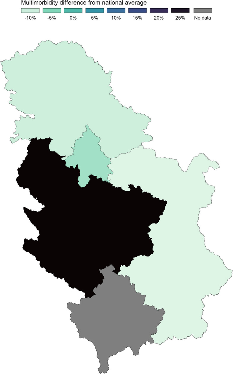 Background: Substantial inequalities in the overall prevalence and patterns of multimorbidity have been widely reported, but the causal mechanisms are complex and not well understood. This study aimed to identify common patterns of multimorbidity in Serbia and assess their relationship with air pollutant concentrations and water quality indicators.