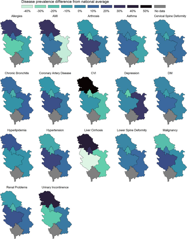 Methods: This ecological study was conducted on a nationally representative sample of the Serbian population. Data were obtained from the European Health Interview (EHIS) Survey, a periodic study designed to assess population health using widely recognized standardized instruments. The study included 13,069 participants aged 15 and older, randomly selected through a multistage stratified sampling design. Multimorbidity was defined as having two or more self-reported diagnoses of chronic non-communicable diseases. Latent class analysis (LCA) was performed to identify clusters of multimorbidity. Concentrations of particulate matter (PM10), sulfur dioxide (SO2), nitrogen dioxide (NO2), carbon monoxide (CO), and ozone (O3), as well as water quality indicators, were obtained from the Serbian Environmental Protection Agency.