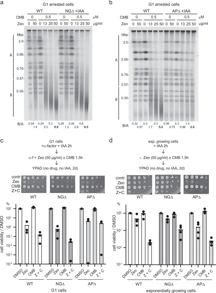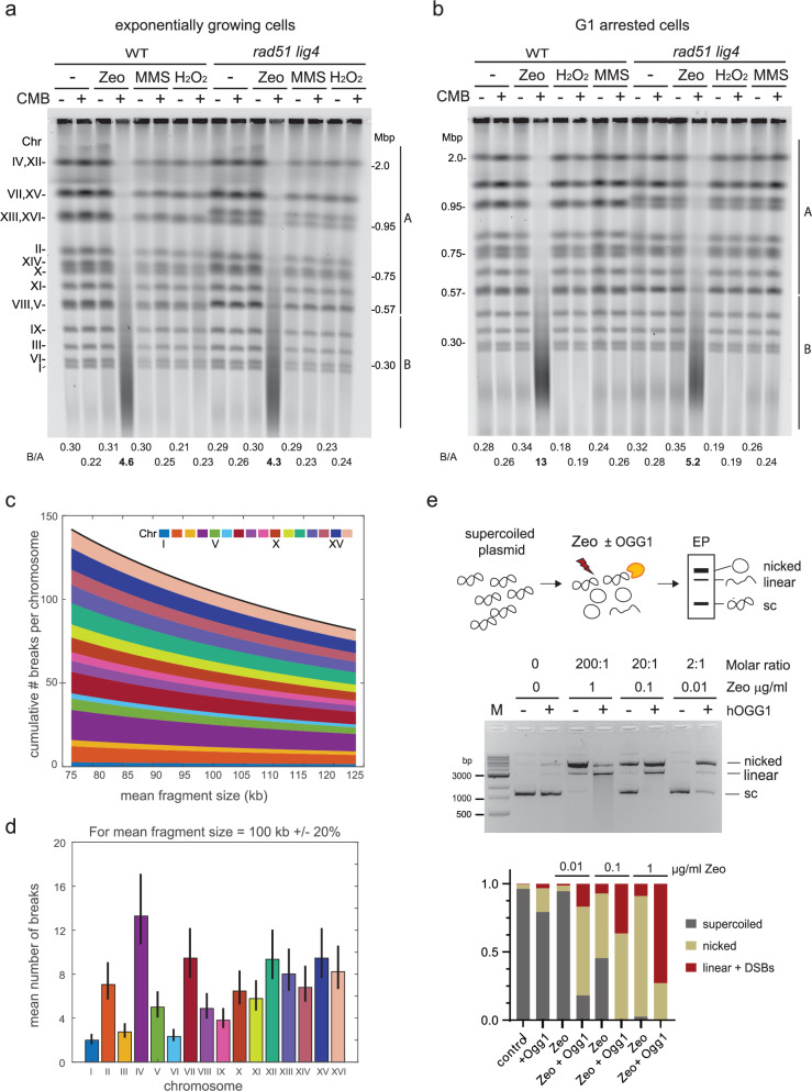 Combinational therapies provoking cell death are of major interest in oncology. Combining TORC2 kinase inhibition with the radiomimetic drug Zeocin results in a rapid accumulation of double-strand breaks (DSB) in the budding yeast genome. This lethal Yeast Chromosome Shattering (YCS) requires conserved enzymes of base excision repair. YCS can be attenuated by eliminating three N-glycosylases or endonucleases Apn1/Apn2 and Rad1, which act to convert oxidized bases into abasic sites and single-strand nicks. Adjacent lesions must be repaired in a step-wise fashion to avoid generating DSBs. Artificially increasing nuclear actin by destabilizing cytoplasmic actin filaments or by expressing a nuclear export-deficient actin interferes with this step-wise repair and generates DSBs, while mutants that impair DNA polymerase processivity reduce them. Repair factors that bind actin include Apn1, RFA and the actin-dependent chromatin remodeler INO80C. During YCS, increased INO80C activity could enhance both DNA polymerase processivity and repair factor access to convert clustered lesions into DSBs.