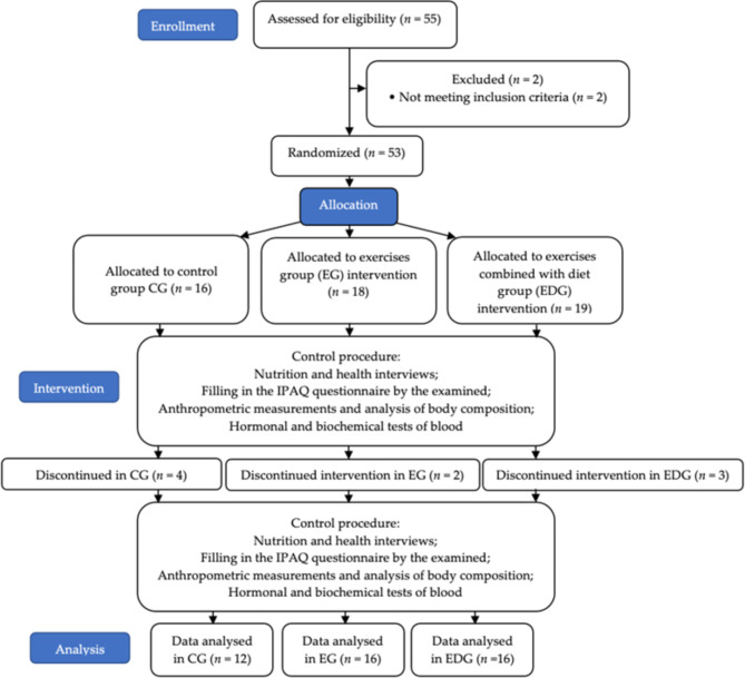 Addressing abdominal obesity requires multifaceted strategies, with physical activity and diet playing a pivotal role. The objective of this study was to assess alterations in body composition, adipokine concentrations, insulin resistance parameters, and lipid metabolism in males with abdominal obesity following two distinct interventions: exercise alone and exercise combined with a specific diet. The study involved 44 males with abdominal obesity (average age 34.7 ± 5.5 years, waist circumference [WC] 110.3 ± 8.5), randomly assigned to three groups: an experimental group with aerobic-resistance exercise (EG, n = 16), an experimental group with aerobic-resistance exercise combined with a high-protein, low-glycemic index carbohydrate diet (EDG, n = 16), both interventions lasting 6 weeks, and a control group without interventions (CG, n = 12). Body composition (body mass [BM], body fat percentage [BF%], fat-free mass [FFM], android body fat percentage [ANDR]), as well as biochemical blood analyses (asprosin [ASP], leptin [LEP], quantitative insulin sensitivity check index [QUICKI], and total cholesterol [TC]), were conducted at baseline and after 6 weeks of intervention. The impact of interventions on the analyzed variables among groups was assessed using mixed ANOVA tests with post-hoc comparisons. Effect size (ES) was also evaluated using 𝜂p2. Significant reductions in ASP concentration after intervention were observed in both EG (p = 0.04) and EDG (p = 0.01). However, post-hoc tests revealed a decrease in LEP only in the EDG group (p < 0.01). In EDG substantial decreases after 6 weeks of intervention were noted in BM (p < 0.01), BF% (p < 0.01), ANDR (p < 0.01) and TC (p < 0.01). The most notable increase in FFM was observed in the EDG group (p < 0.01). More favourable metabolic outcomes were confirmed in the group combining diet with exercise, where there was a notable reduction in ASP levels by 16% and LEP by 48% after 6 weeks of intervention, compared to the group undergoing exercise alone.