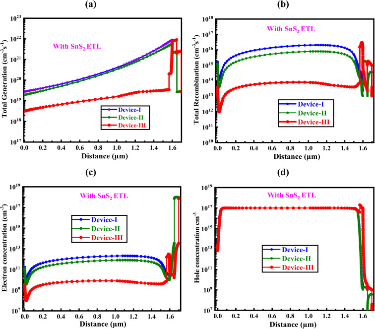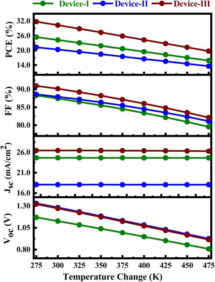 The study looks into how Sr3PBr3 and Sr3NCl3 double perovskite materials can be used as absorbers in perovskite solar cells (PSCs). Computational Sr3PBr3 and Sr3NCl3 simulations were employed to assess the performance of each absorber together with electron transport layers (ETL), with a particular emphasis on optimizing ETL thickness to improve charge transport and synchronize current outputs. The simulations yielded valuable insights into the electronic and optical characteristics of the individual absorbers. Subsequently, a tandem simulation was performed to adjust each layer's thickness, ensuring that both devices' current outputs were aligned for maximum system efficiency. The findings revealed that the tandem configuration of Sr3PBr3 and Sr3NCl3 surpassed the performance of the individual absorber setups, attributed to the optimized ETL thicknesses that enhanced charge transport and facilitated effective current matching. This study makes a significant contribution to the design and optimization of tandem PSCs utilizing Sr3PBr3 and Sr3NCl3 absorbers, paving the way for improved overall device efficiency. We investigated three device configurations to find the optimum structure. FTO/SnS2/Sr3PBr3/Ni, FTO/SnS2/Sr3NCl3/Ni, and FTO/SnS2/Sr3PBr3/Sr3NCl3/Ni are considered as Device-I, II, and III. In Device-I, the execution parameters are power conversion efficiency (PCE) of 24.26%, an open-circuit voltage (V OC) of 1.23 V, a short-circuit current density (J SC) of 24.65 mA cm-2, and a fill factor (FF) of 87.42%. For Device-II, PCE, FF, V OC, and J SC are correspondingly 20.35%, 87.91%, 1.28 V, and 18.07 mA cm-2. The further refined tandem configuration achieved a PCE of 30.32%, with a V OC of 1.27 V, an FF of 90.14%, and a J SC of 26.44 mA cm-2, demonstrating the potential of this methodology in enhancing PSC performance.