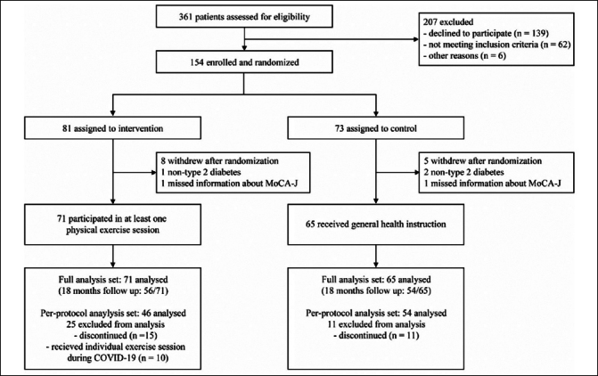 Intervention: The multidomain intervention program includes management of metabolic and vascular risk factors, exercise, nutritional counseling, and promotion of social participation. Participants in the control group received usual care and treatment for type 2 diabetes.