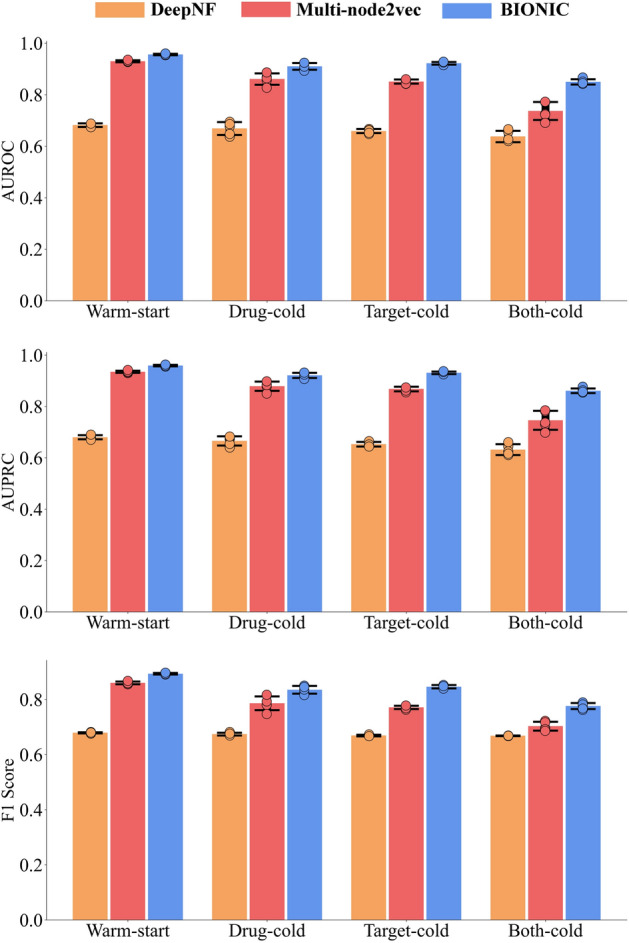 Methods: Here, we propose DrugMAN, a deep learning model for predicting drug-target interaction by integrating multiplex heterogeneous functional networks with a mutual attention network (MAN). DrugMAN uses a graph attention network-based integration algorithm to learn network-specific low-dimensional features for drugs and target proteins by integrating four drug networks and seven gene/protein networks collected by a certain screening conditions, respectively. DrugMAN then captures interaction information between drug and target representations by a mutual attention network to improve drug-target prediction.