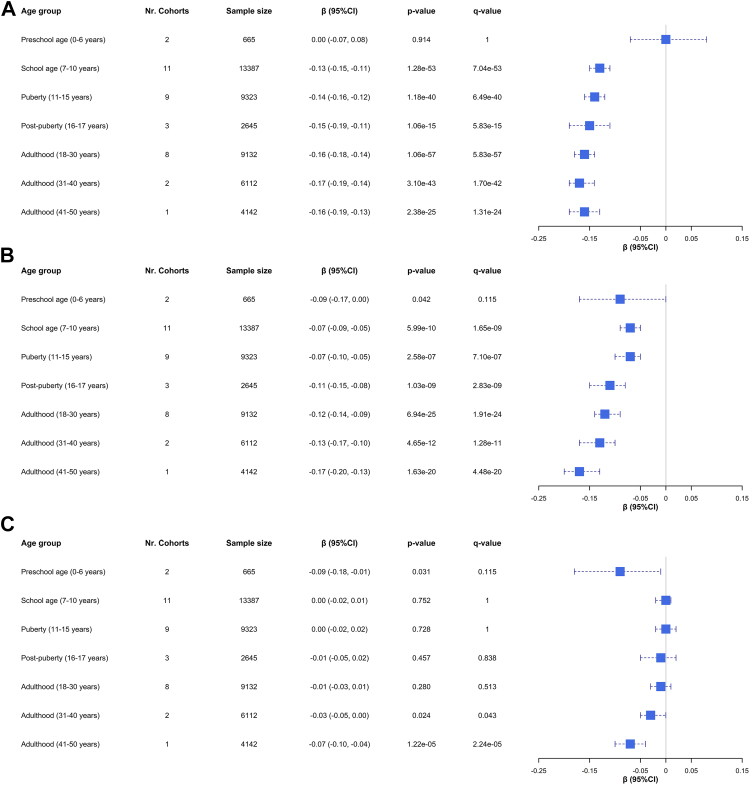 Methods: A weighted PRS was calculated based on the 82 association signals (p ≤ 5 × 10-8) revealed by the largest GWAS of airflow limitation (defined as COPD) to date. This PRS was tested in association with lung function measures (FEV1, FVC, and FEV1/FVC) in subjects aged 4-50 years from 16 independent cohorts participating in the Chronic Airway Diseases Early Stratification (CADSET) Clinical Research Collaboration. Age-stratified meta-analyses were conducted combining the results from each cohort (n = 45,406). These findings were validated in subjects >50 years old.
