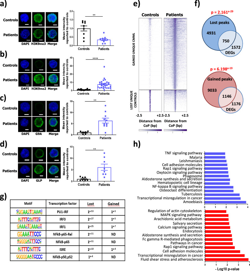 Chronic myelomonocytic leukemia (CMML) is a severe myeloid malignancy affecting the elderly, for which therapeutic options are limited. DNA hypomethylating agents (HMAs) provide transient responses, failing to eradicate the malignant clone. Hematopoietic stem cell (HSC) aging involves heterochromatin reorganization, evidenced by alterations in histone marks H3K9me2 and H3K9me3. These repressive marks together with DNA methylation are essential for suppressing transposable elements (TEs). In solid cancers, the antitumor efficacy of HMAs involves the derepression of TEs, mimicking a state of viral infection. In this study, we demonstrate a significant disorganization of heterochromatin in CMML HSCs and progenitors (HSPCs) characterized by an increase in the repressive mark H3K9me2, mainly at the level of TEs, and a repression of immune and age-associated transcripts. Combining HMAs with G9A/GLP H3K9me2 methyltransferase inhibitors reactivates these pathways, selectively targeting mutated cells while preserving wild-type HSCs, thus offering new therapeutic avenues for this severe myeloid malignancy.