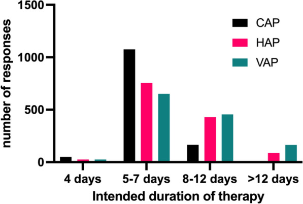 Methods: The D-PRISM study was a multinational, survey-based investigation to assess the diagnosis and treatment of pneumonia in the ICU. A self-administered online questionnaire was distributed to intensive care clinicians from 72 countries between September to November 2022. The questionnaire included sections on professional profiles, current clinical practice in diagnosing and managing CAP, HAP, and VAP, and the availability of microbiology diagnostic tests. Multivariable analysis using multiple regression analysis was used to assess the relationship between reported antibiotic duration and organisational variables collected in the study.
