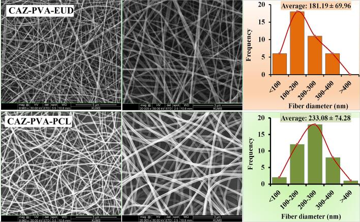 Ocular drug delivery presents significant challenges, attributed to the various anatomical and physiological barriers, as well as the limitations associated with conventional ocular formulations including low bioavailability, necessitating frequent dosing. The objective of the essay was to design sustained release nanofibrous inserts loaded with ceftazidime (CAZ), an antibiotic effective against gram-negative and gram-positive microorganisms, for the treatment of ocular infections. These nanofibers were fabricated using the electrospinning technique, employing biodegradable polymers such as polyvinyl alcohol (PVA), polycaprolactone (PCL) and Eudragit® (EUD). The nanofibrous inserts exhibited adequate mechanical strength for ocular use with an average diameter < 250 nm. In the initial 12-h period, a burst drug release was observed, followed by a controlled release for 120 h. Cell viability test confirmed the non-toxicity and safety of the nanofibers. The in vivo study demonstrated that the inserts sustain a drug concentration exceeding the minimum inhibitory concentration (MIC) of Pseudomonas aeruginosa and Staphylococcus aureus for 4 and 5 days, respectively. The AUC0 - 120 for CAZ-PVA-PCL was reported 11,882.81 ± 80.5 μg·h/ml and for CAZ-PVA-EUD was 9649.39 ± 86.84 μg·h/ml. The nanofibrous inserts' extended drug release maintains effective antimicrobial concentrations, avoids the fluctuations of eye drops, and, by being preservative-free, eliminates cytotoxicity.