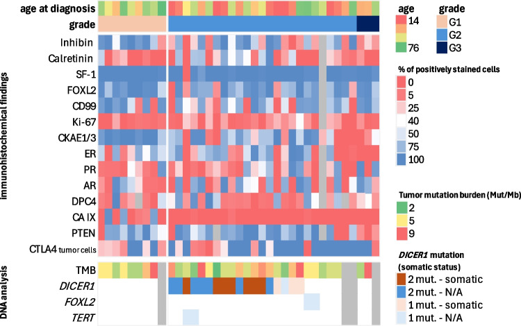 - Karnezis AN, Wang Y, Keul J, Tessier-Cloutier B, Magrill J, Kommoss S, Senz J, Yang W, Proctor L, Schmidt D, Clement PB, Gilks CB, Huntsman DG, Kommoss F (2019) DICER1 and FOXL2 mutation status correlates with clinicopathologic features in ovarian Sertoli-Leydig cell tumors. Am J Surg Pathol 43:628–638 - PubMed