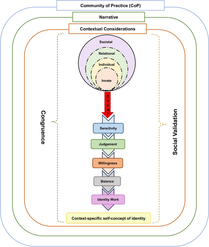 Conclusion: The success of mentoring in PIF lies in its ability to blend role modelling, supervision, mentoring, coaching and teaching, with self-care, guided reflection, apprenticeship and assessment to meet the individual needs of the mentee and their changing circumstances. Blending the contents of the mentoring umbrella emphasises the critical role of the mentor and host organisation in supporting mentor training, communications, support and assessment mechanisms. Mentee engagement and its active role in support measures complement the CoP-like mentoring programme's use of blending mentoring support to advance the socialisation process. These insights reflect a complex interactive process scaffolding the development of mentoring relationships and PIF. The effect of the mentoring umbrella on clinical practice requires further study.