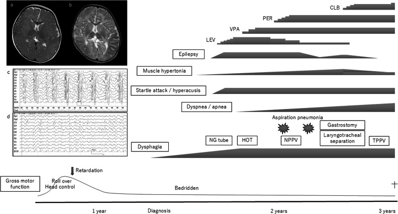 Genetic testing identified novel compound heterozygous missense variants in the HEXA gene (NM_00520.6: c.775A>C and NM_000520.6: c.508C>T) in a 16-month-old girl diagnosed with Tay‒Sachs disease. The patient gradually became unable to consume food orally. She suffered severe aspiration pneumonia and underwent gastrostomy and laryngotracheal separation at 2 years and 4 months of age. Despite an initially good prognosis, she died at 3 years of age.