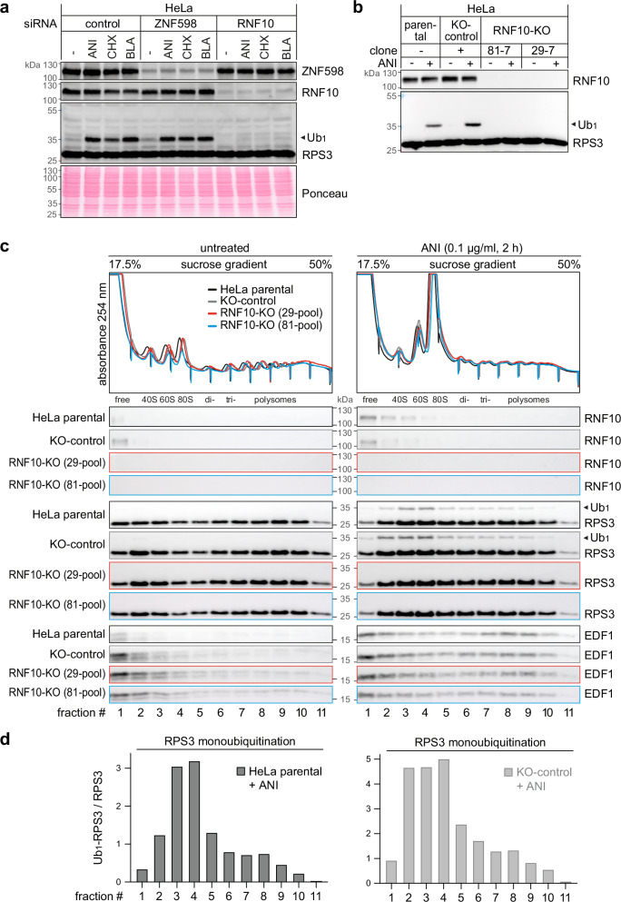 E3 ubiquitin ligase RNF10 promotes dissociation of stalled ribosomes and responds to ribosomal subunit imbalance