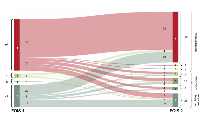 Results: From 497 included patients (65 years, IQR 51-77), 148 received a DA, confirming dysphagia in 125 subjects. DA by the SLP resulted in a significant CIFR, with 32 (21.6%) subjects receiving stricter diets, and in 29 (19.6%) cases a reduction of dietary recommendations. 50 patients lacked readiness for oral intake due to severely affected oral phase or reduced consciousness.