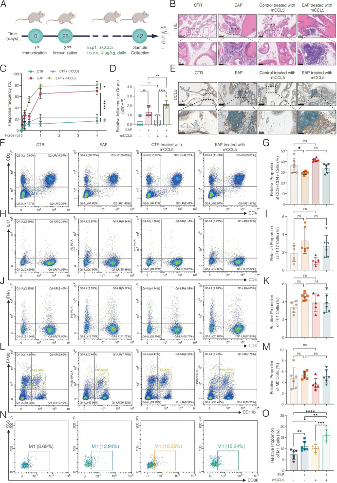 Methods: A 48-cytokine panel test was conducted to compare the plasma cytokine profiles between participants with CP-like symptoms (CP-LS) and healthy controls. Experimental autoimmune prostatitis (EAP) models were used for functional validation, with further mechanistic studies performed through in vivo and in vitro assays. Pharmacological inhibition was applied using maraviroc, and pathway inhibitors to assess therapeutic potential.