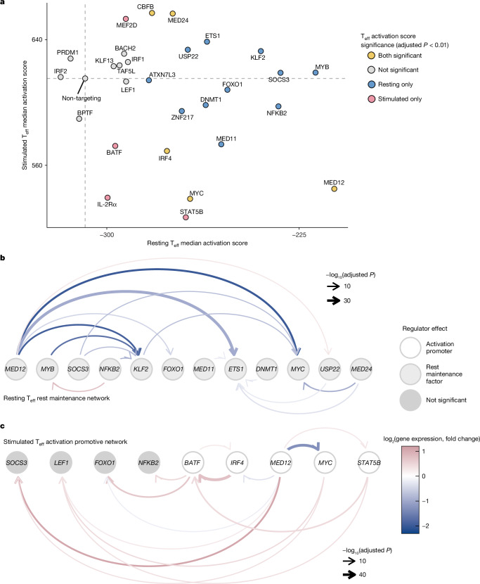 Competing interests: A.M. is a cofounder of Site Tx, Arsenal Biosciences, Spotlight Therapeutics and Survey Genomics; serves on the boards of directors at Site Tx, Spotlight Therapeutics and Survey Genomics; is a member of the scientific advisory boards of Site Tx, Arsenal Biosciences, Cellanome, Spotlight Therapeutics, Survey Genomics, NewLimit, Amgen and Tenaya; owns stock in Arsenal Biosciences, Site Tx, Cellanome, Spotlight Therapeutics, NewLimit, Survey Genomics, Tenaya and Lightcast; has received fees from Site Tx, Arsenal Biosciences, Cellanome, Spotlight Therapeutics, NewLimit, Gilead, Pfizer, 23andMe, PACT Pharma, Juno Therapeutics, Tenaya, Lightcast, Trizell, Vertex, Merck, Amgen, Genentech, GLG, ClearView Healthcare, AlphaSights, Rupert Case Management, Bernstein and ALDA; is an investor in and informal advisor to Offline Ventures; and a client of EPIQ. The Marson laboratory has received research support from the Parker Institute for Cancer Immunotherapy, the Emerson Collective, Arc Institute, Juno Therapeutics, Epinomics, Sanofi, GlaxoSmithKline, Gilead and Anthem and reagents from Genscript and Illumina. The Krogan Laboratory has received research support from Vir Biotechnology, F. Hoffmann-La Roche and Rezo Therapeutics. N.J.K. has a financially compensated consulting agreement with Maze Therapeutics. N.J.K. is the President and on the Board of Directors of Rezo Therapeutics; and is a shareholder in Tenaya Therapeutics, Maze Therapeutics, Rezo Therapeutics, GEn1E Lifesciences and Interline Therapeutics. J.W.F. was a consultant for NewLimit; is an employee of Genentech; and has equity in Roche. A.T.S. is a founder of Immunai, Cartography Biosciences, Santa Ana Bio and Prox Biosciences; is an advisor to Zafrens and Wing Venture Capital; and receives research funding from Astellas and Merck Research Laboratories. Patent applications have been filed based on the findings described here. The other authors declare no competing interests.