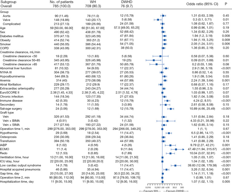 Results: In total, 9.7% (76/785) of the DSWI patients experienced DWHD in the present study. The all-cause mortality rate was 3.7% (29/785). While 90.3% (709/785) of the patients achieved WH after undergoing PMFT. The multivariate logistic regression model indicated that patients with diabetes mellitus, obesity, a history of smoking, abnormal liver function, anemia, chronic infection, immune disease, hypothermia, a longer gap time, and patients requiring extracorporeal membrane oxygenation (ECMO) assistance, salvage surgery, and secondary cardiac surgery were more likely to experience DWDH.