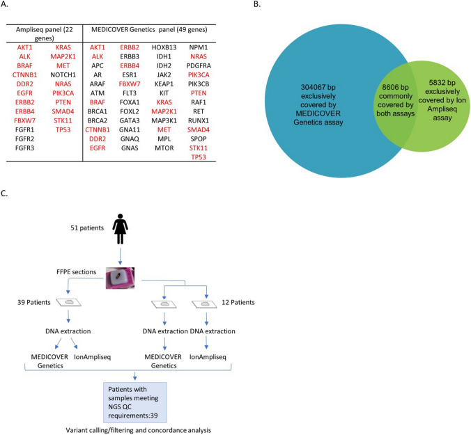 Declarations. Competing interests: CL: Employed by MEDICOVER Genetics has filed a PCT patent application for Target-enriched multiplexed parallel analysis for assessment of tumor biomarkers (WO2019/008172A1); AA: Employed by MEDICOVER Genetics; has filed a PCT patent application for the Target-enriched multiplexed parallel analysis for assessment of tumor biomarkers (WO2019/008172A1); has filed a PCT patent application for the Enrichment of Targeted Genomic Regions for Multiplexed Par-allel Analysis (WO2019/008148A9); EK: Employed by MEDICOVER Genetics; has filed a PCT pa-tent application for the Target-enriched multiplexed parallel analysis for assessment of tumor biomarkers (WO2019/008172A1); has filed a PCT patent application for the Enrichment of Tar-geted Genomic Regions for Multiplexed Parallel Analysis (WO2019/008148A9); KT: Employed by MEDICOVER Genetics, has filed a PCT patent application for the Enrichment of Targeted Ge-nomic Regions for Multiplexed Parallel Analysis (WO2019/008148A9); AE: Employed by MEDI-COVER Genetics; has filed a PCT patent application for the Target-enriched multiplexed parallel analysis for assessment of tumor biomarkers (WO2019/008172A1); MI: Employed by MEDICOV-ER Genetics; has filed a PCT patent application for the Target-enriched multiplexed parallel analysis for assessment of tumor biomarkers (WO2019/008172A1), has filed a PCT patent applica-tion for the Enrichment of Targeted Genomic Regions for Multiplexed Parallel Analysis (WO2019/008148A9); GK: Employed by MEDICOVER Genetics; has filed a PCT patent application for the Target-enriched multiplexed parallel analysis for assessment of tumor biomarkers (WO2019/008172A1); has filed a PCT patent application for the Enrichment of Targeted Genomic Regions for Multiplexed Parallel Analysis (WO2019/008148A9); PCP: Employed by MEDICOVER Genetics; has filed a PCT patent application for the Target-enriched multiplexed parallel analysis for assessment of tumor biomarkers (WO2019/008172A1); has filed a PCT patent application for the Enrichment of Targeted Genomic Regions for Multiplexed Parallel Analysis (WO2019/008148A9); The rest of the authors declare no conflict of interest.