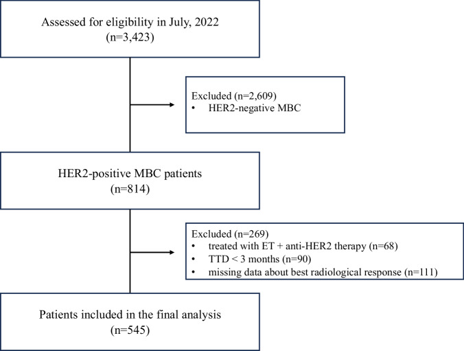 Clinico-pathological predictors of radiologic complete response to first-line anti-HER2 therapy in metastatic breast cancer