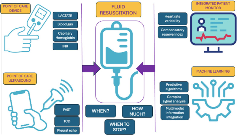 Main text: Current guidelines for managing trauma-induced hemorrhagic shock suggest titrating fluids and using vasopressors to achieve minimal blood pressure targets until hemorrhage is controlled. In case of traumatic brain injury with severe hemorrhage, blood pressure target increases. The scientific literature supporting these recommendations is limited, and several aspects remain the subject of ongoing scientific debate. The aim of this review is to evaluate the existing evidence on low-volume fluid resuscitation during the first hours of trauma management, with an emphasis on its integration with permissive hypotension, vasopressor use and cerebral perfusion pressure in traumatic brain injury. The review also highlights the limitations of current guidelines, particularly the lack of robust evidence supporting specific type of fluid, volumes and administration protocols tailored to specific trauma scenarios and populations. Emerging technologies such as point-of-care diagnostics, integrated monitoring systems, and machine learning hold promise for enhancing clinical decision-making in trauma care. These innovations could play a crucial role, ultimately helping clinicians address critical unanswered questions in trauma management and improve patient survival.