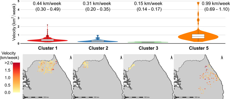 In October 2019, South Korea's first case of African swine fever (ASF) was reported in wild boar in the north of the country. Despite the implementation of a 2300 km-long fencing strategy, the ASF wavefront continued to invade southward. Our study aimed to investigate the ASF wavefront dynamics in different regions of South Korea, as well as to assess the effectiveness of the fencing measures on ASF dispersal and wavefront velocity. From the nationwide wild boar surveillance system, we extracted 2661 cases, starting from 2 October 2019 (first detection) to 15 September 2022. The cases were categorised into four main spatiotemporal clusters. The average wavefront velocity over the four clusters was estimated at 0.52 km/week, with the cluster in the eastern part of the Korean peninsula exhibiting the fastest velocity (0.99 km/week) compared to the other clusters (0.44, 0.31, and 0.15 km/week). We hypothesise that these differences are related to different wild boar densities due to heterogeneous habitat suitability. We also found that fencing significantly impacted ASF dispersal in only two of the four main clusters, with no evidence that fencing slowed down the spread of the wavefront in any of the clusters. We argue that this heterogeneity might result from fencing locations being misaligned with the true (and unobserved) wavefront.