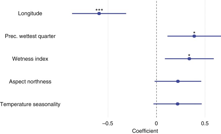 Key results: Based on nSSRs, the study populations of Q. pubescens were divided into a western and an eastern genetic cluster. Within these clusters, more pronounced genetic substructure was observed in the west, probably due to a rugged topography and limited gene flow. Introgression from Q. petraea was more prevalent at wetter and north-exposed sites and in the west. The identified cpSSR haplotypes followed known migration pathways.
