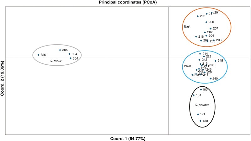 - Antonecchia G, Fortini P, Lepais O, et al.2015. Genetic structure of a natural oak community in central Italy: Evidence of gene flow between three sympatric white oak species (Quercus, Fagaceae). Annals of Forest Research 57: 1. doi: https://doi.org/10.15287/afr.2015.415 - DOI