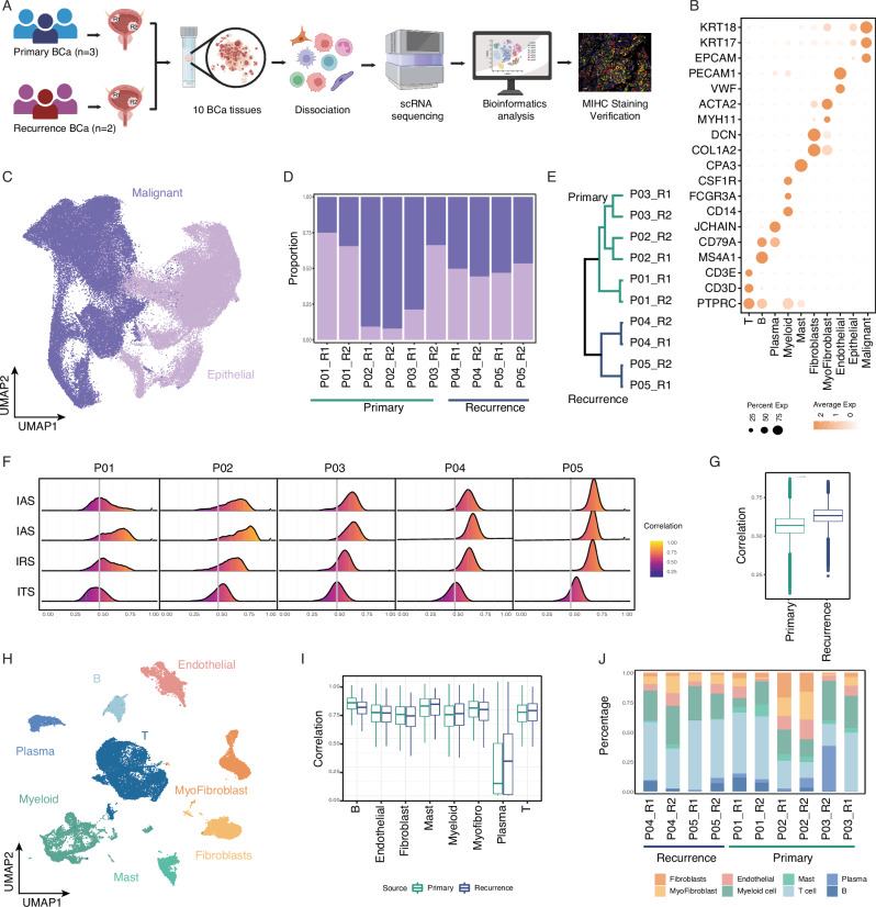 Single-cell dissection of multifocal bladder cancer reveals malignant and immune cells variation between primary and recurrent tumor lesions