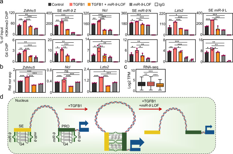 Nuclear microRNA 9 mediates G-quadruplex formation and 3D genome organization during TGF-β-induced transcription