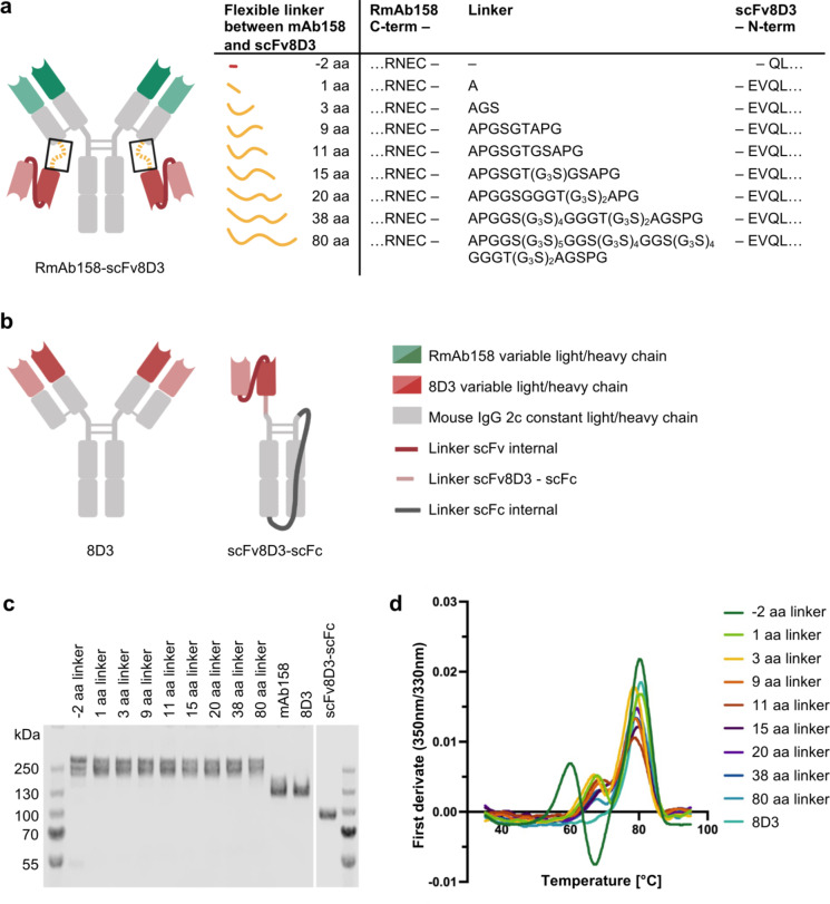 A shorter linker in the bispecific antibody RmAb158-scFv8D3 improves TfR-mediated blood-brain barrier transcytosis in vitro