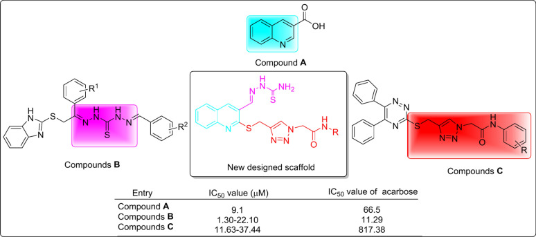 Keywords: 1,2,3-Triazole; Quinoline; Thiosemicarbazone; α-Glucosidase inhibitors.