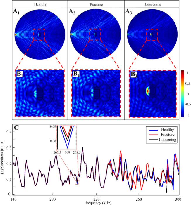 Mechanical failure of medical implants, especially in orthopedic poses a significant burden to the patients and healthcare system. The majority of the implant failures are diagnosed at very late stages and are of mechanical causes. This makes the diagnosis and screening of implant failure very challenging. There have been several attempts for development of new implants and screening methods to address this issue; however, the majority of these methods focus on development of new implants or material and cannot satisfy the needs of the patients that have already been operated on. In this work we are introducing a novel screening method and investigate the feasibility of using low-intensity, low-frequency ultrasound acoustic waves for understanding of interfacial implant defects through computational simulation. In this method, we simultaneously apply and sense acoustic waves. COMSOL simulations proved the correlation between implant health condition, severity, and location of defects with measured acoustic signal. Moreover, we show that machine learning not only can detect and classify failure types, it can also assess the severity of the defects. We believe that this work can be used as a proof of concept to rationalize the development of non-invasive screening acoustic wearables for early detection of implant failure in patients with orthopedic implants.