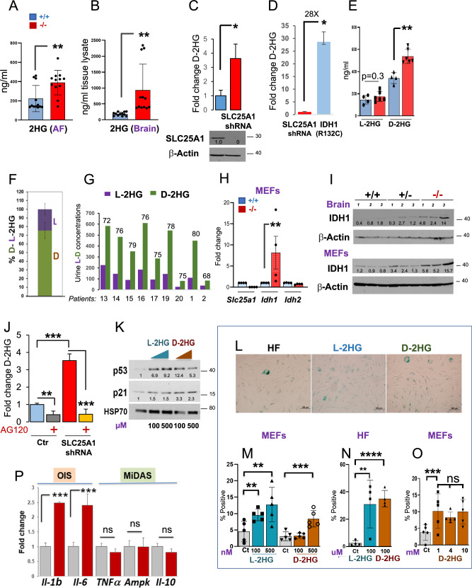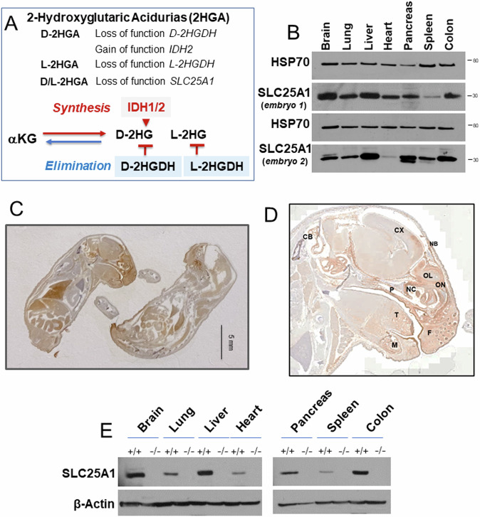 Germline inactivating mutations of the SLC25A1 gene contribute to various human disorders, including Velocardiofacial (VCFS), DiGeorge (DGS) syndromes and combined D/L-2-hydroxyglutaric aciduria (D/L-2HGA), a severe systemic disease characterized by the accumulation of 2-hydroxyglutaric acid (2HG). The mechanisms by which SLC25A1 loss leads to these syndromes remain largely unclear. Here, we describe a mouse model of SLC25A1 deficiency that mimics human VCFS/DGS and D/L-2HGA. Surprisingly, inactivation of both Slc25a1 alleles results in alterations in the development of multiple organs, and in a severe proliferation defect by activating two senescence programs, oncogene-induced senescence (OIS) and mitochondrial dysfunction-induced senescence (MiDAS), which converge upon the induction of the p53 tumor suppressor. Mechanistically, cells and tissues with dysfunctional SLC25A1 protein undergo metabolic and transcriptional rewiring leading to the accumulation of 2HG via a non-canonical pathway and to the depletion of nicotinamide adenine dinucleotide, NAD+, which trigger senescence. Replenishing the pool of NAD+ or promoting the clearance of 2HG rescues the proliferation defect of cells with dysfunctional SLC25A1 in a cooperative fashion. Further, removal of p53 activity via RNA interference restores proliferation, indicating that p53 acts as a critical barrier to the expansion of cells lacking functional SLC25A1. These findings reveal unexpected pathogenic roles of senescence and of p53 in D/L-2HGA and identify potential therapeutic strategies to correct salient molecular alterations driving this disease.