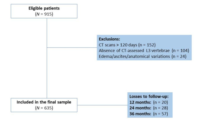 Keywords: Body composition; Cancer; Computed tomography; Muscle mass; Survival.