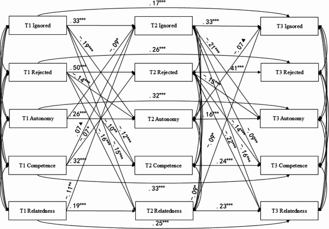 Keywords: Basic psychological needs; Cross-lagged panel model; Social exclusion.