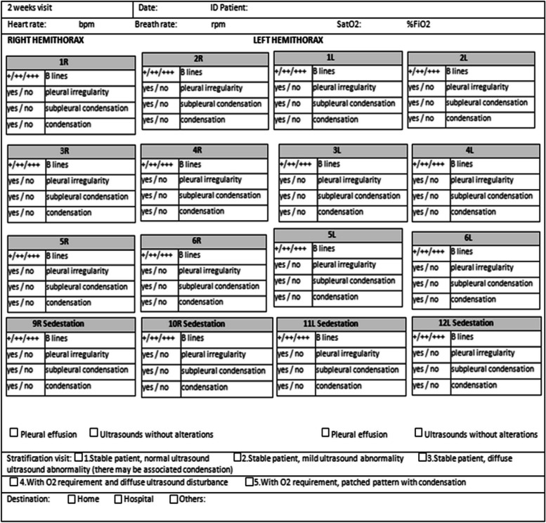 Declarations. Ethics approval and consent to participate: The study protocol and study methodology was approved by ethic committees by the Clinical Research Ethics Committee (CEIC) of the Primary Care Research Institute (IDIAP Jordi Gol). Registration CEIC 20/080-PCV. Once the project information sheet has been explained and delivered, written consent has been requested for participation in the study. Those patients who have started the already existing circuit for the diagnosis and follow-up of COVID-19 patients using ultrasound, prior to the start of the study, had been contacted by phone and their written consent has been requested. Informed consent was obtained from all subjects involved in the study. The collected variables had been treated anonymously and guaranteeing the confidentiality of the data, according to the provisions of Regulation (EU) 2016/679 of the European Parliament and the Council of April 27 on data protection (RGPD) and the organic law 3 /2018, of December 5, on the protection of personal data and the guarantee of digital rights. The database is in the hands of the IP and the research team in an Excel format and with password access. An anonymized database has been used for the analysis. This study was approved by the Ethical Committee of Institut d’Investigació en Atenció Primària Jordi Gol i Gurina (Barcelona, Spain) (registration number p20/138). Consent for publication: Not Applicable. Competing interests: The authors declare no competing interests.