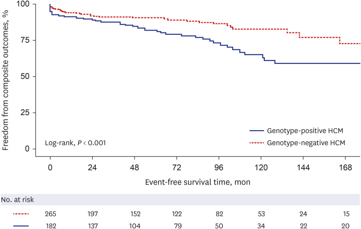 Methods: We enrolled 1,554 patients with suspected HCM having left ventricular hypertrophy on transthoracic echocardiography between April 2012 and February 2023. Patients who declined genetic testing or who had pure apical HCM without a familial history were excluded. Genetic testing was performed using a next-generation sequencing panel or whole-exome sequencing for cardiomyopathies. We performed cardiovascular magnetic resonance if the diagnosis was inconclusive. Genotype-positive HCM was defined as sarcomere gene mutations of pathogenic or likely pathogenic variants. Adverse clinical outcomes were defined as a composite of all-cause death, resuscitated cardiac arrest, heart failure-related admission, appropriate implantable cardioverter defibrillator shocks, and stroke.