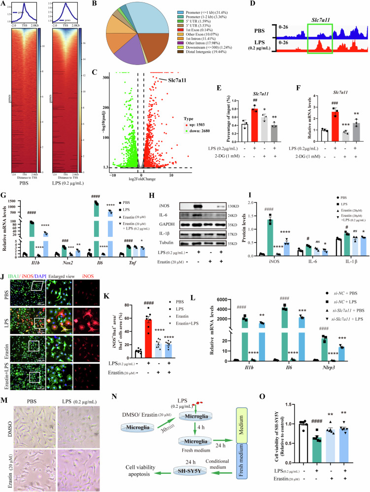 The switch from oxidative phosphorylation to glycolysis is crucial for microglial activation. Recent studies highlight that histone lactylation promotes macrophage homeostatic gene expression via transcriptional regulation, but its role in microglia activation in Parkinson's disease (PD) remains unclear. Here, we demonstrated that inhibiting glycolysis with 2-deoxy-D-glucose alleviates microgliosis, neuroinflammation and dopaminergic neurons damage by reducing lactate accumulation in PD mice. Notably, we observed a marked increase in histone lactylation, particularly H3K9 lactylation, in microglia in the substantia nigra of PD mice. Mechanistically, CUT&Tag and Chip-qPCR analyses revealed that H3K9 lactylation enriched at the SLC7A11promoter and activated its expression. Importantly, inhibiting SLC7A11 by sulfasalazine mitigated microglia-mediated neuroinflammation and improved motor function in PD mice. Moreover, we found that lactate-induce histone lactylation is dependent on P300/CBP. Collectively, our findings demonstrate that glycolysis-derived lactate promotes microglial activation via histone lactylation and provide a potential therapeutic strategy for PD.
