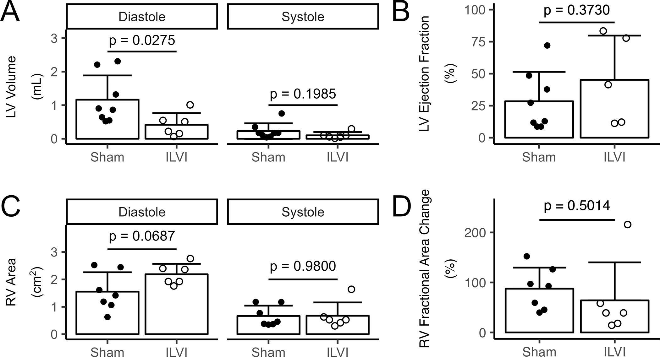 Robust preclinical models of asymmetric ventricular loading in late gestation reflecting conditions such as hypoplastic left heart syndrome are lacking. We characterized the morphometry and microvascular function of the hypoplastic left ventricle (LV) and remaining right ventricle (RV) in a sham-controlled late gestation fetal lamb model of impaired left ventricular inflow (ILVI). Singleton fetuses were instrumented at ∼120 days gestational age (dGA; term is ∼147 days) with vascular catheters, an aortic flow probe and a deflated left atrial balloon. Balloons in ILVI fetuses were inflated over the 8 day study until aortic output was eliminated; Sham balloons remained deflated. At the study end-point (∼134 dGA), cardiac function was assessed by echocardiography, microvascular perfusion of each free wall was measured by myocardial contrast echocardiography (MCE) and terminal morphometric data were collected. During the chronic study, flow through the ascending aorta of ILVI fetuses fell from 389 to -48 mL min-1 with minimal changes to other haemodynamics or blood chemistry. End-point echocardiography and morphometry similarly showed significant and meaningful reductions in ILVI LV chamber volume and wall mass without statistically significant changes in RV size relative to Shams. MCE revealed modestly increased LV perfusion and profoundly increased RV perfusion in ILVI fetuses. Our model displays effective LV hypoplasia with preserved overall fetal health, and our finding of increased RV myocardial perfusion may indicate active vascular remodelling in response to the experimental lesion. KEY POINTS: Hypoplastic left heart syndrome can be caused by insufficient inflow of blood to the fetal left ventricle. We found that eliminating fetal left ventricular input for 8 days reduced left ventricular size and volume, with minimal effects on the right ventricle or overall fetal health. Blood and oxygen delivery increased significantly in the right ventricle and slightly in the hypoplastic left ventricle. Our results suggest functional and anatomical adaptation of the fetal coronary microvasculature to univentricular right heart conditions.